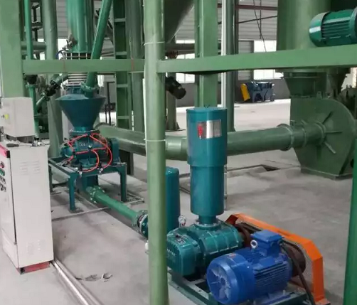 本系统一般采用罗茨鼓风机作为气源,旋转供料器等作为供料装置,物料经供料装置进入输送管道,与高速气力混合后输送到末端收料仓,通过料气分离装置过滤后的气体排入大气。