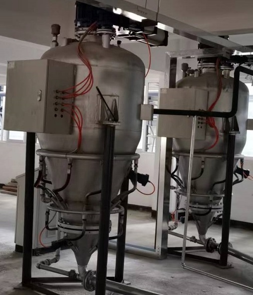 正压气力输送系统是利用正压气体对物料进行输送的一种方式,正压气力输送时将气体输入到供料器内,使空气和物料混合,混合后的气体和物料经过分离器内,物体和气体分离,气体经过除尘装置后排入空气中,物料沉积到料仓中。
