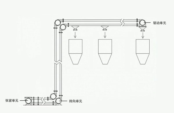 Z型管链输送机主要包括张紧单元、转向单元、驱动单元三大部分,另外在驱动单元内部配有闭环链条和链片,由链轮驱动,转动时链片带动物料在密闭的管道内进行移动,达到无尘输送物料的目的。