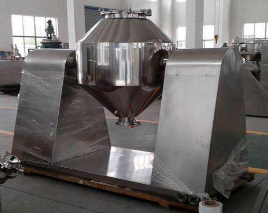 双锥混合机是将粒状或粉末物料通过人工加料或真空输送到双锥容器中,随着容量的不断旋转,物料在容器中进行复杂的撞击运动,达到均匀的混合。